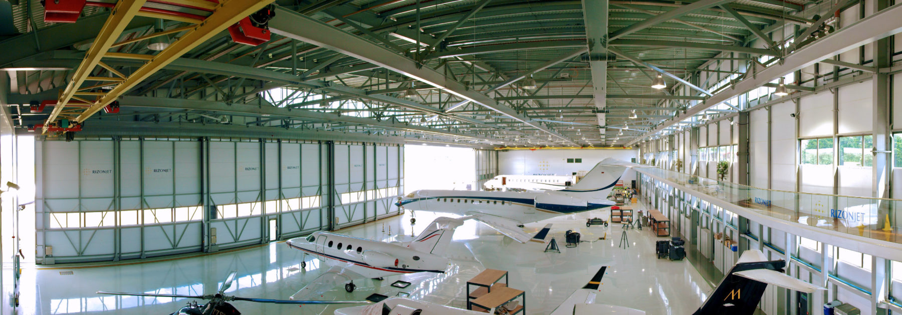 The RizonJet office, maintenance and hangar facility forms a major new 13,000sqm development in the South Camp area of London Biggin Hill Airport. The hangar houses an MRO facility and an AOC charter operation along with a Fixed Base Operation geared to meet the high expectations of its discerning Gulf-based clients.