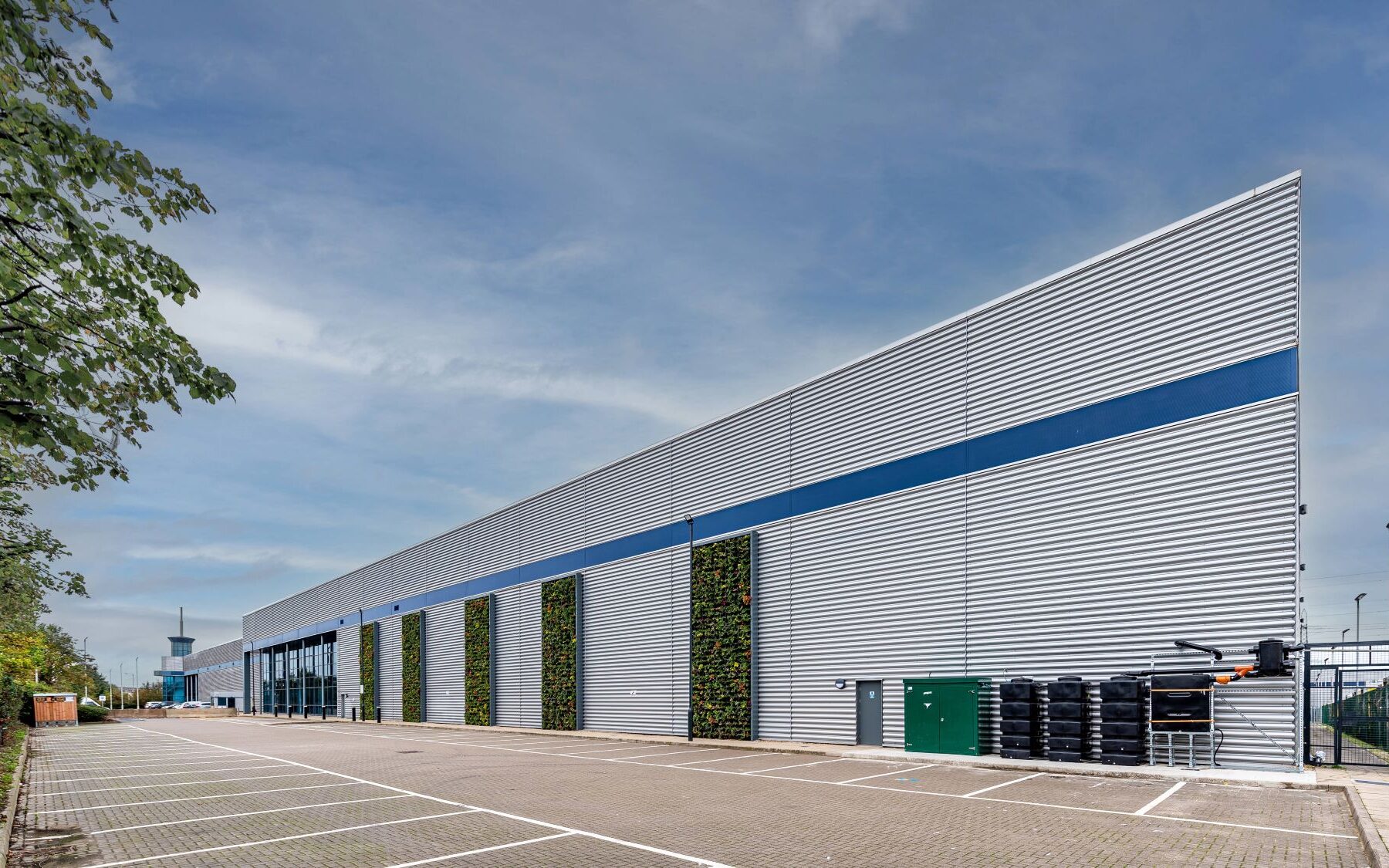 Working with our client Boreal IM, HMY refurbished a tired and outdated warehouse with offices to provide 66,900 ft² of accommodation to BREEAM Excellent standard with an EPC rating of A. The sustainable strategy included, heat pumps, 535 pv panels with an output of 214kWp, 12 electric vehicle charging points with infrastructure for 100% parking. A green wall with rainwater harvesting to provide irrigation was installed which will remove particulates, increase biodiversity on the site and contribute to cooling of the south facade.