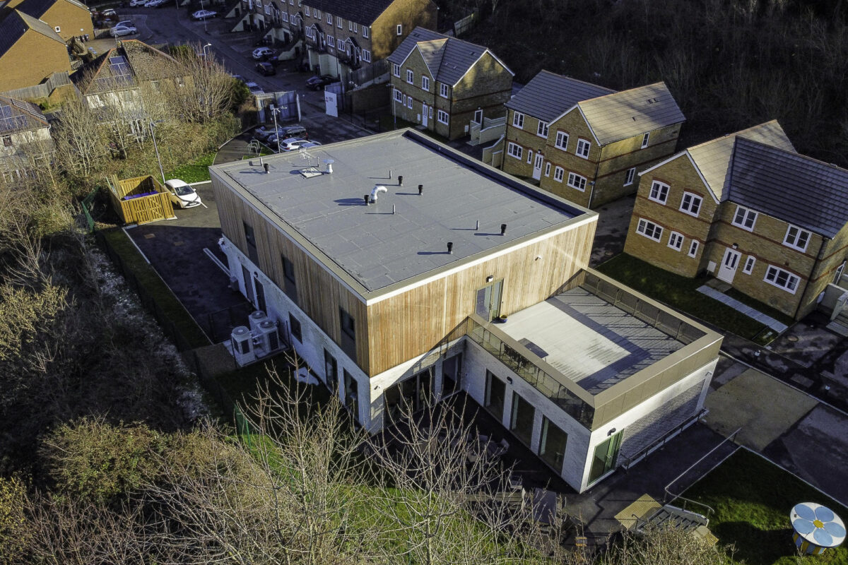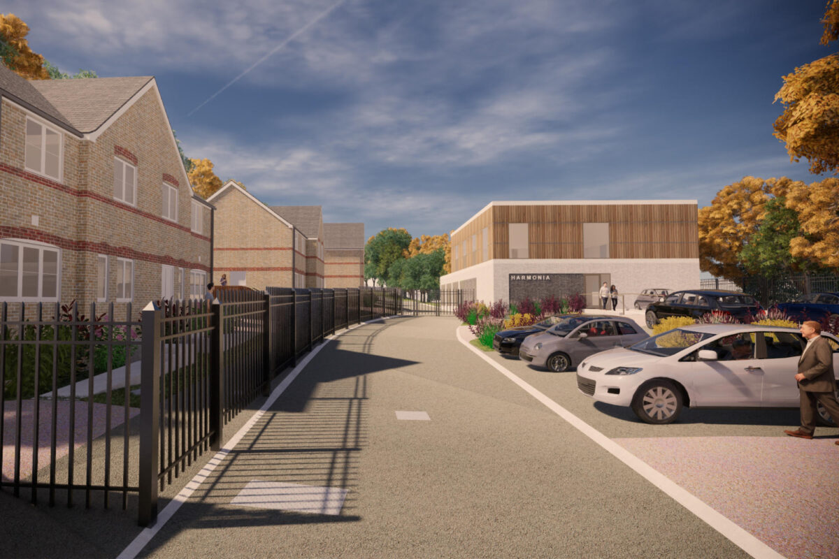 The project remodels 12 redundant semi-detached houses to provide accommodation for 30 residents. A new hub building has communal facilities for the Harmonia Village residents and use by the local community and volunteers together with six bed respite care accommodation.