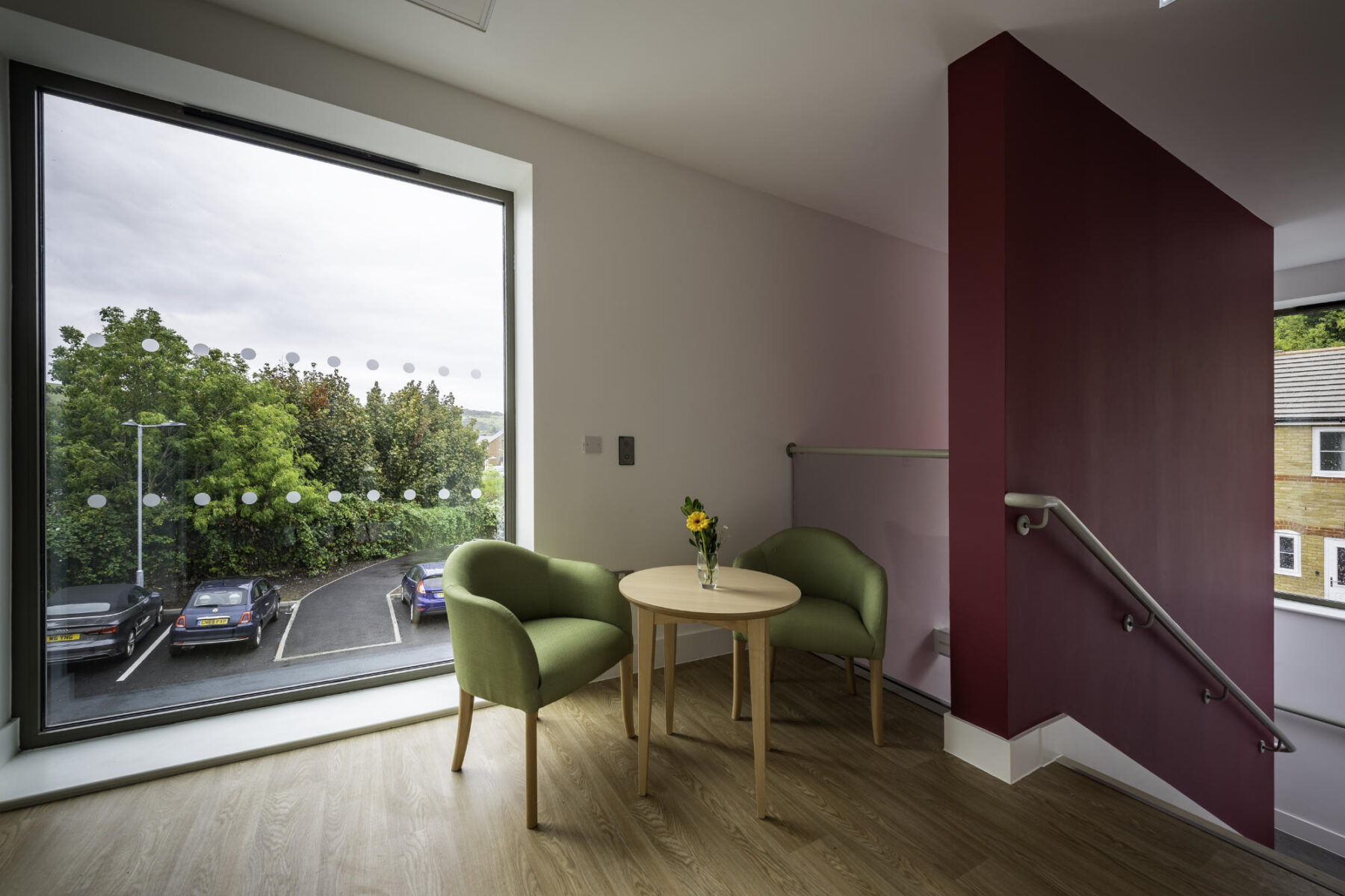 The design team researched the latest thinking in dementia friendly environments and adapted these for this context. This included adapting existing housing stock to be fully accessible and to create a new community. Externally the site had to be designed to ensure residents were able to move freely yet safely but at the same time be approachable to the local community. The new Hub building is the transition point between public, semi-public and private space. The Hub also provides a unique ‘guest house with care’ facility enabling visitors to stay over or carers to take a short break with their partners in a safe supportive environment.