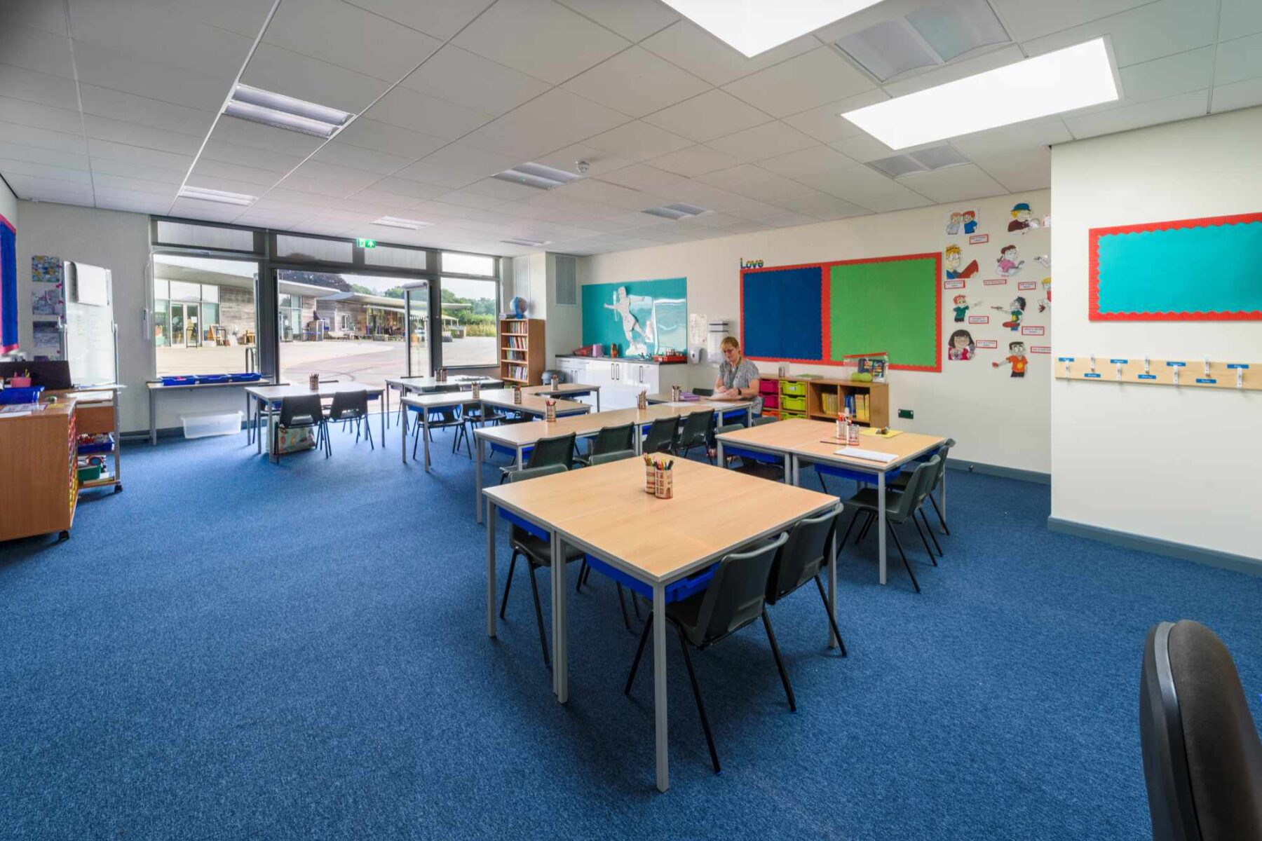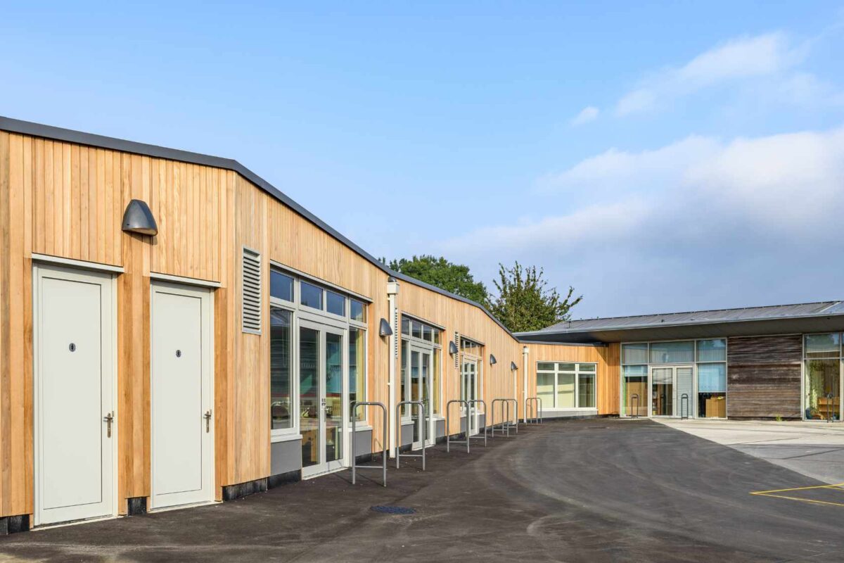 The building is constructed using Structural Insulated Panels (SIP), made off-site is a sandwich of oriented strand board with an insulating rigid Polyurethane (PUR) core ( CFC/HCFC-free with zero Ozone Depletion Potential and has a Low Global Warming Potential). This sustainable approach reduces waste, enables the building shell to be quickly constructed and to be watertight. The extension and associated works were constructed whilst maintaining the safe day to day operation of the Primary School and playground.
