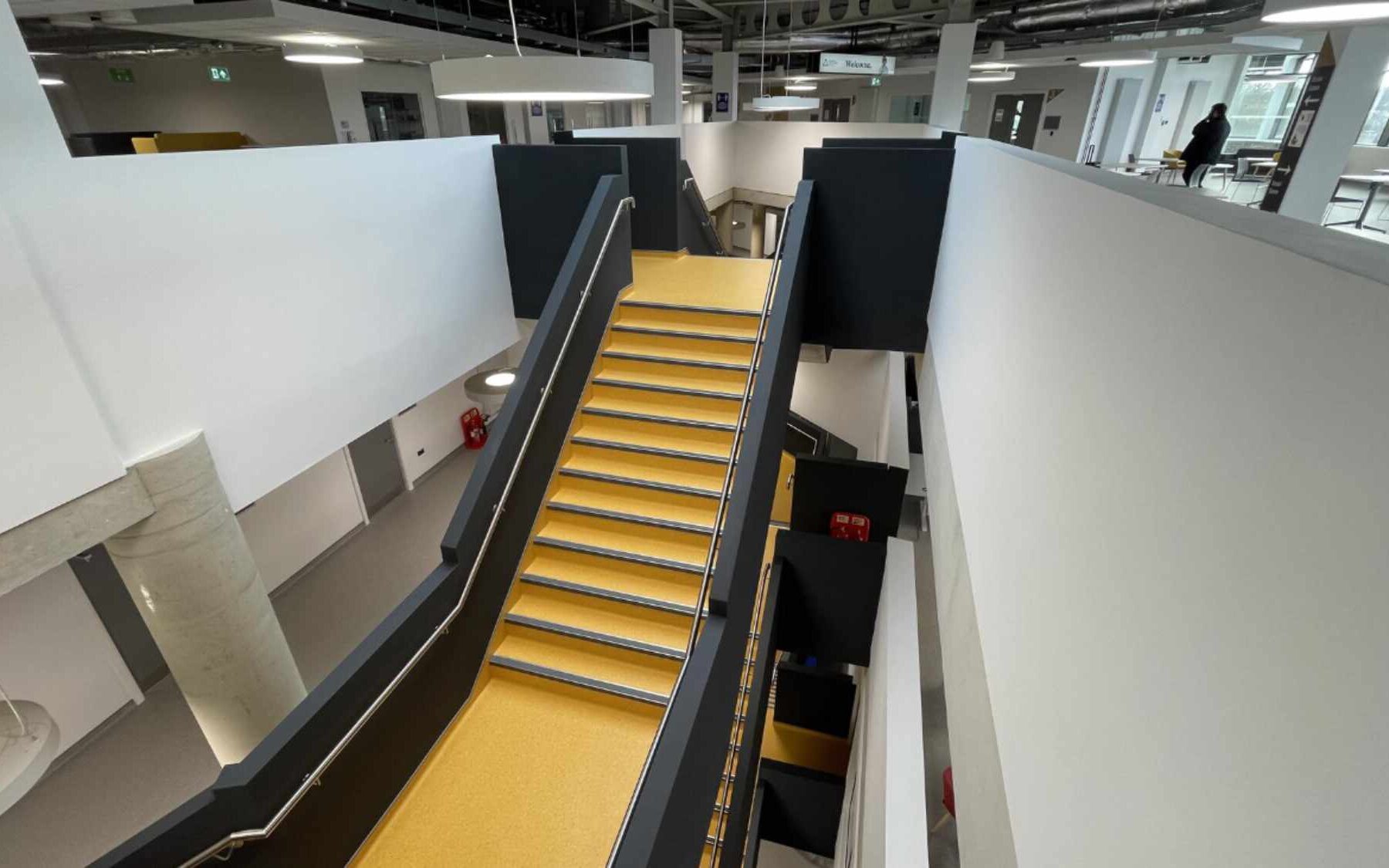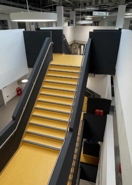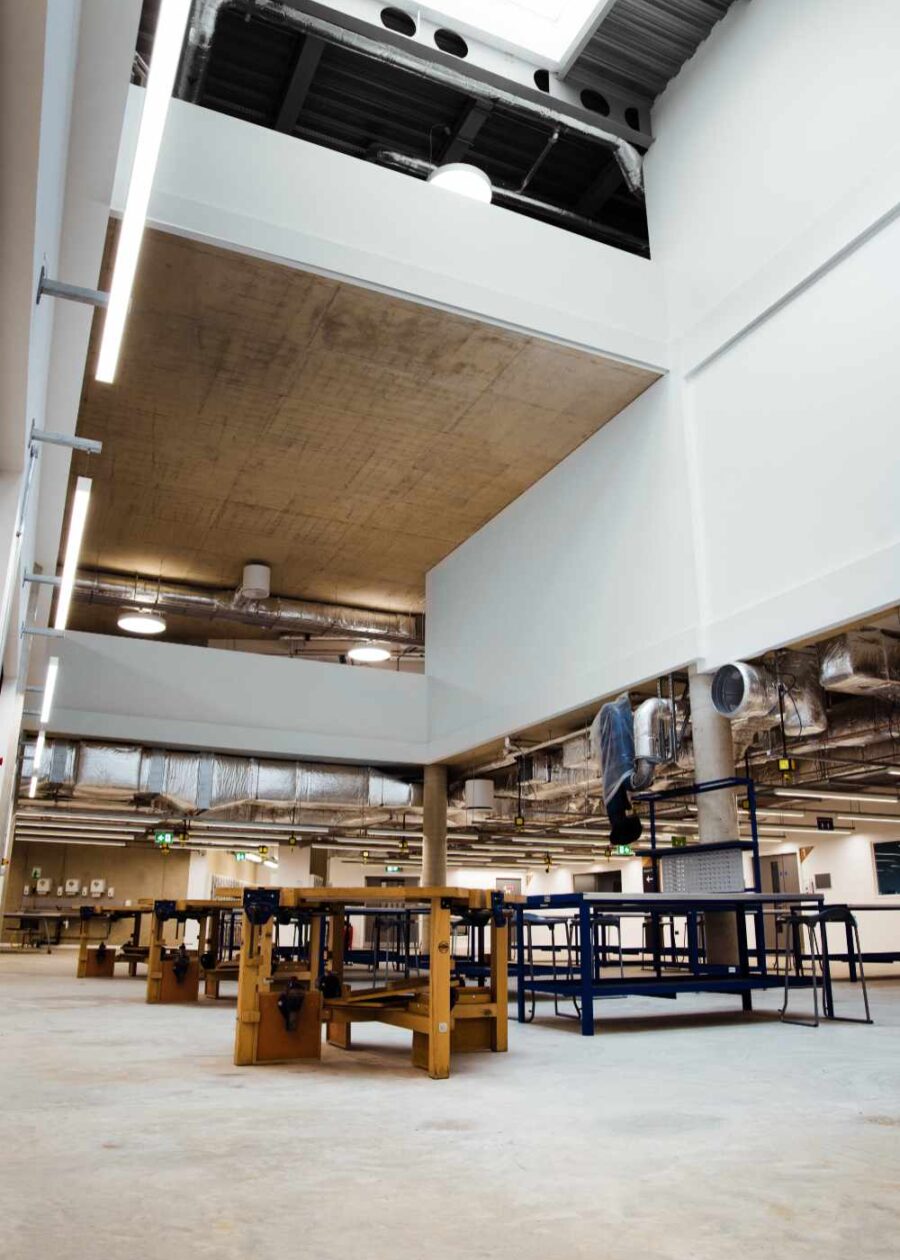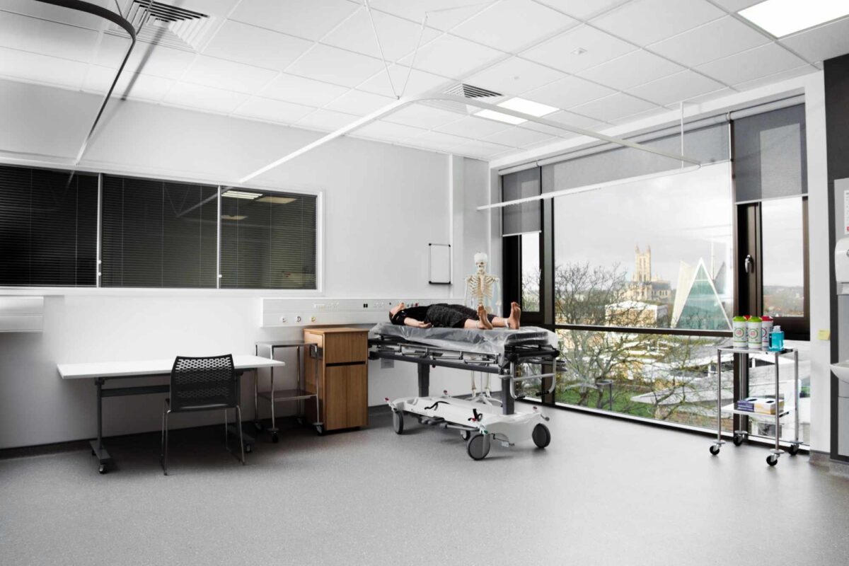 The building is part of the Universities’ £150m city campus investment comprising 18,000m2 together with a lower ground car park, erection of a single storey Energy Centre and landscaping works located on the former Canterbury Prison site in the heart of Canterbury. It has specialist accommodation which includes a teaching mortuary, health and wellbeing simulated hospital wards and associated spaces, specialist engineering workshops, computer suites, criminology suite, sports science and chemistry and biology labs.